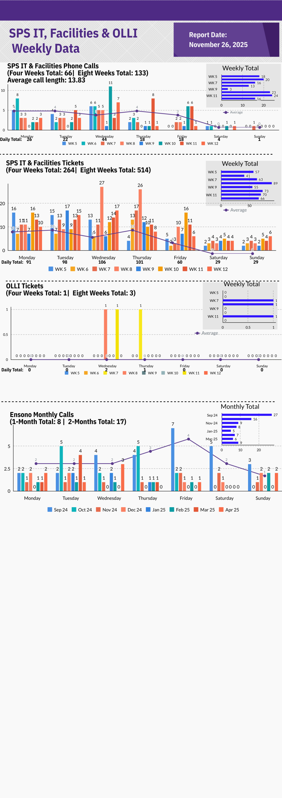 Information Technology and Facilities Service Desk Statistics August 20, 2024November 26, 2025 Lito Lomahan Download Week 12 (November 17 – November 23) Download Week 11 (November 10 – November 16)